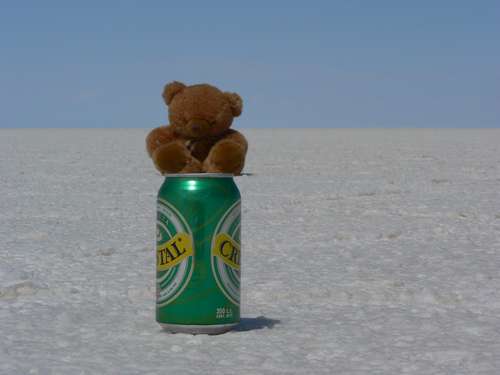 Our mascot "Baker" on the salt flats of Bolivia